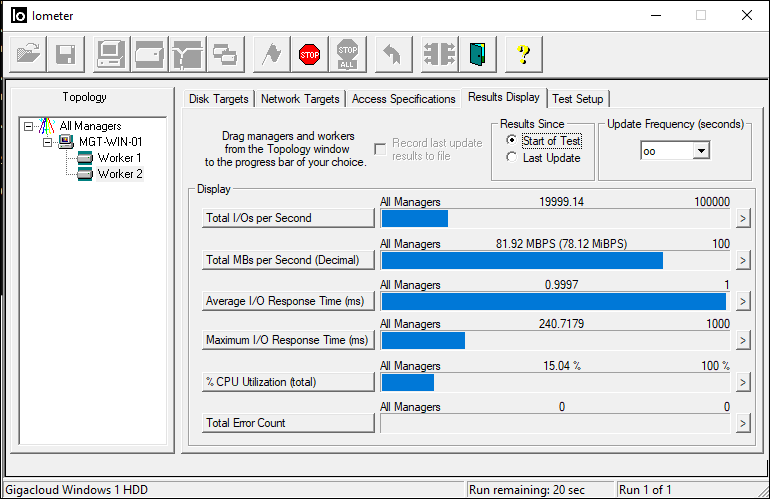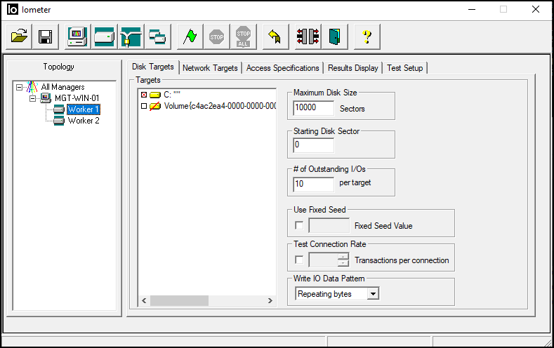 - Wybór typu testu: Iometer pozwala na testowanie zarówno dysków lokalnych, jak i zdalnych, a także na przeprowadzenie testów dla różnych typów obciążeń (np. odczyt, zapis, mieszane operacje).