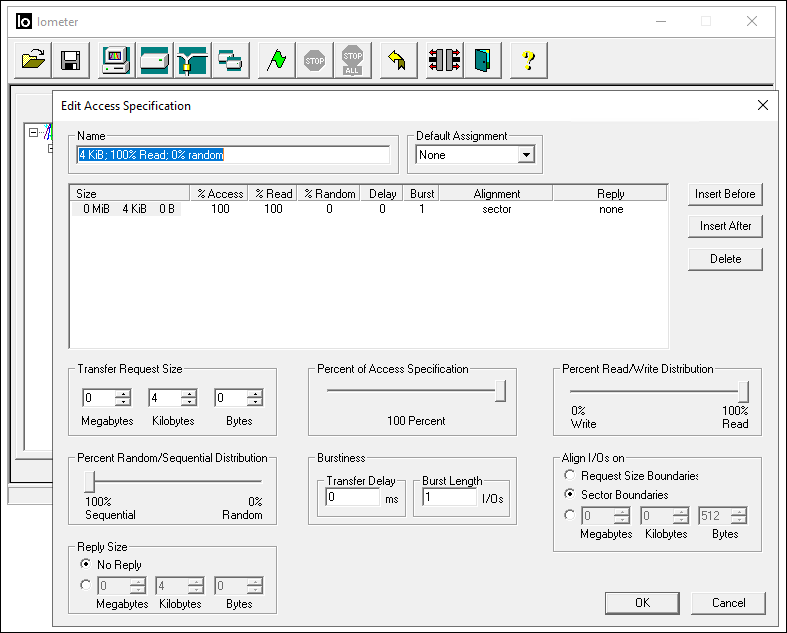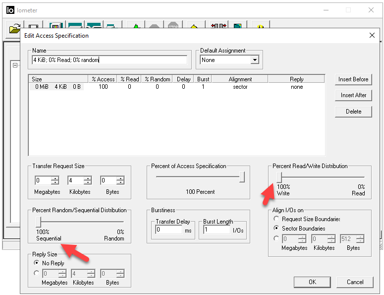 Iometer pozwala na przeprowadzenie testów losowego i sekwencyjnego dostępu do dysku, które różnią się pod względem wymagań i obciążenia: